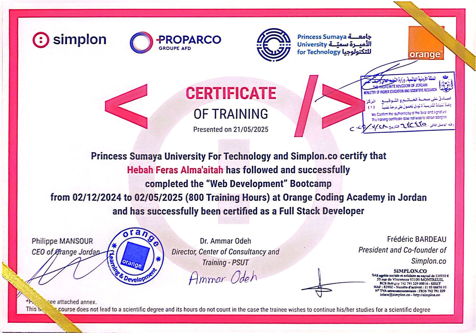 Training at Orange (Customer Relationship Management), working with enterprise systems and strengthening problem-solving and debugging skills.